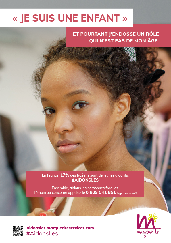 " Je suis une enfant et pourtant j'endosse un rôle qui n'est pas le mien. Quand je rentre de l'école, j'aide ma mère en situation de handicap et je réalise avec elle les tâches du quotidien. J'arrivais épuisée à l'école. Un professeur a contacté Marguerite pour parler de notre situation. Marguerite a déployé ses services et fait en sorte que ma mère puisse bénéficier de tout le soutien dont elle avait besoin. Aujourd'hui, je peux vivre ma vie comme tous les autres enfants."