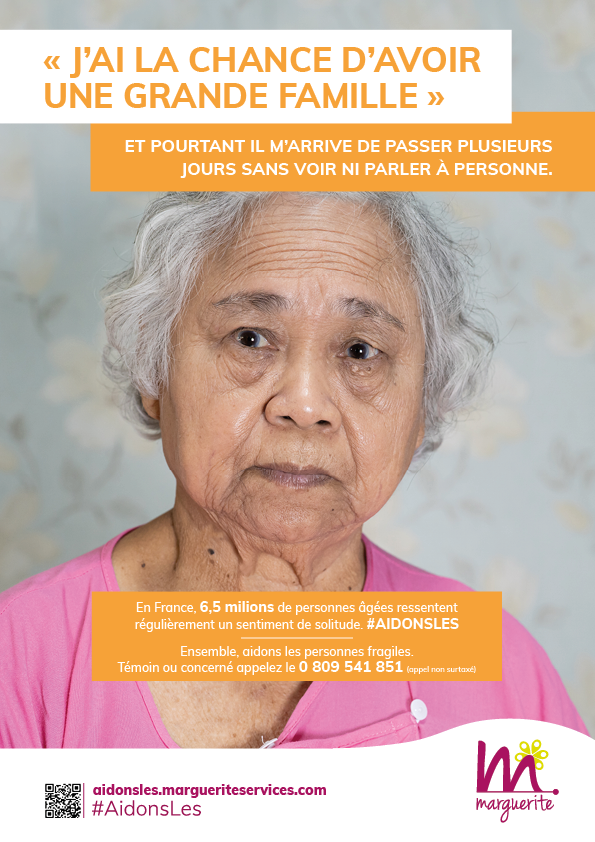 "J'ai la chance d'avoir une grande famille et pourtant il m'arrive de passer plusieurs jours sans voir ni parler à personne. Grâce à Marguerite et à sa Campagne solidaire, j'ai pu bénéficier d'un accompagnement gratuit. Ils m'ont orienté vers des structures dédiées aux personnes dans ma situation et ont fait preuve d'une grande écoute. Je sais que je peux compter sur eux."